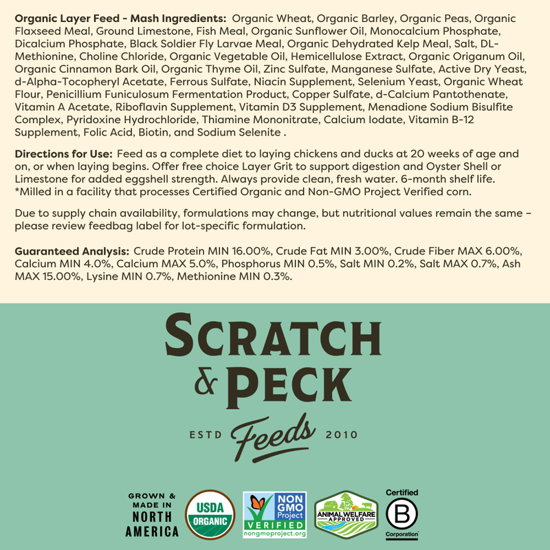 Scratch and Peck Feeds Organic Chicken & Duck Feed, Layer Mash 16%, 40-lb